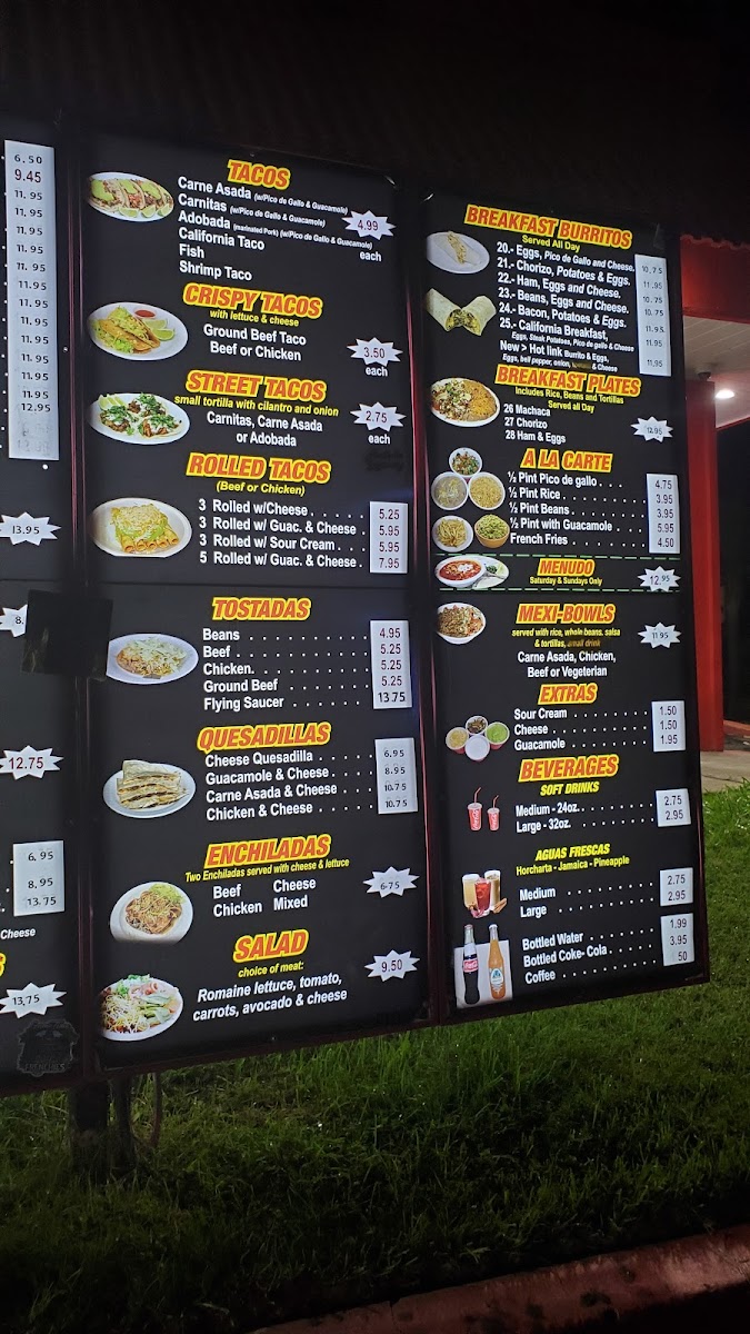 The menu includes hearty choices such as carne asada fries, street tacos, and breakfast burritos, perfect for starting your morning or fueling up midday. For those craving something a bit more filling, the asada burrito or chicken quesadilla provide satisfying meals with familiar, well-loved flavors. Light snacks like chips with salsa and taquitos make for easy options if you're just in the mood for casual, shareable bites.